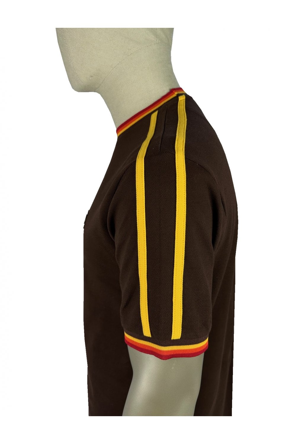 Trojan Records Men's TC1042 Three Colour Tipped Pique T Shirt Chocolate Brown