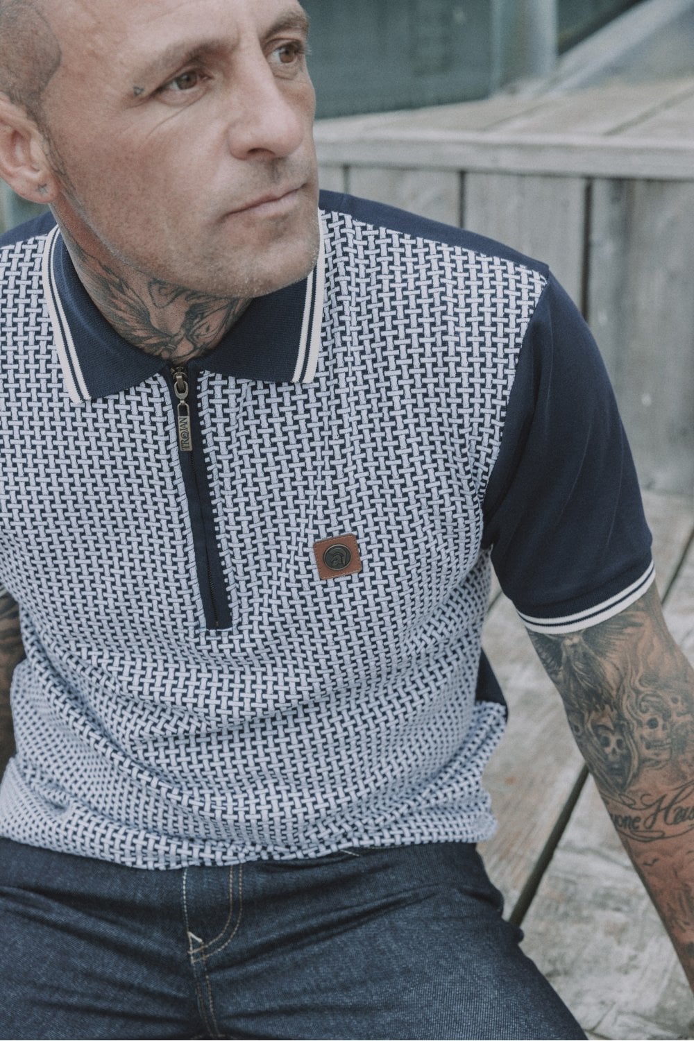 - TR9031 Basket Knit Zip Panel Polo Shirt Navy